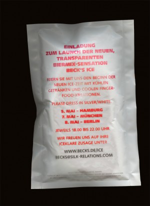 Die Einladung des die Markteinführung begleitenden Presseevents greift den Produktnamen auf und bringt Kälte ins Spiel. Von Zwölf konstruierte Einweg-Kühlbeutel wurden so mit einer thermosensitiven Farbe bedruckt, dass erst nach Aktivierung der Beutel der Einladungstext für etwa fünfzehn Minuten zu lesen war.