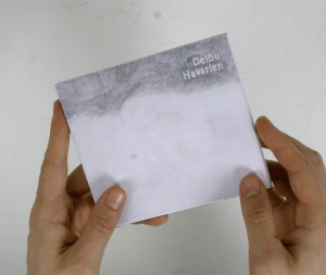 Die Jungs von Delbo machen wunderschönen unkonventionellen Indiepop. Wie die 2006er Platte „Havarien“ (Loob Musik) aussehen sollte, war sehr lange unklar: zu vertrackt kniffelig erschien die Musik, als das man sie mit Farben und Formen fassen konnte. Genau das war dann die Lösung: ein Verpackungsdesign, das bis auf den Bandnamen und Plattentitel vollkommen unsichtbar ist und dessen Inhalte sich erst durch eine langsame Verschmutzung hervorheben. Wer’s schneller mag, konnte natürlich auch einen Bleistift nehmen. Hier nochmal besten Dank an’s Label, das solche eine Produktion (keine Logos, keine Credits) in einem Majorvertrieb (Universal) überhaupt möglich gemacht hat.