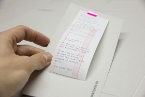Die Berliner Photoproduktionsagentur Lunik wollte wie schon im Jahr zuvor auf aufwändige Weihnachtsgeschenke an Freunde und Geschäftspartner verzichten und stattdessen die Berliner Tafel unterstützen. Das erzählten wir auf billig aufgetriebenen Thermodruckern, deren Kassenbons mit dem Spendenbetrag wir an einfach gestempelte Pappen hefteten.
