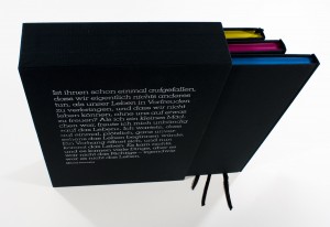 Philip Emde ist Künstler. Wir gestalteten und produzierten mit ihm die Reproduktion drei seiner Skizzenbücher, wenn auch deren Inhalte der Beschreibung trotzen, da sie in ihrer Qualität weit über Sketches hinausgehen; man kann schon eher von einem „Kunstbuch“ sprechen – dementsprechend hochwertig verhielt es sich mit der Herstellung.
